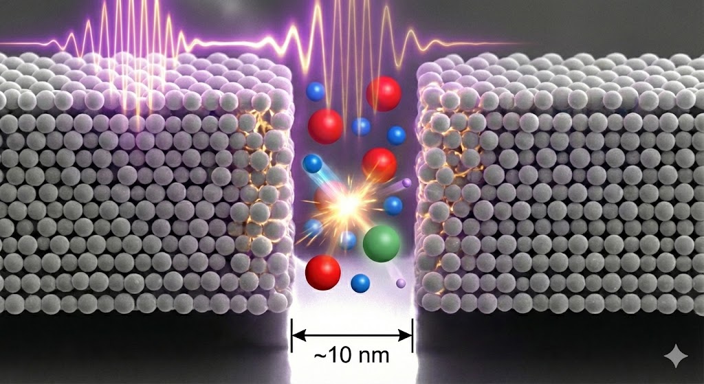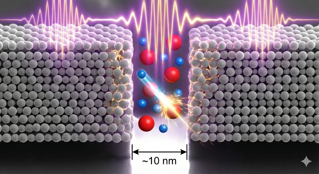 Il motore di questa nuova teoria non è più una massa elettronica “magica” , che improvvisamente diventa pesante, ma l’accelerazione ponderomotrice indotta dalle onde Terahertz (THz). Immaginiamo la superficie ruvida di un metallo come il palladio, piena di “nanofessure” (nanogaps) grandi tra i 5 e i 20 nanometri. Quando queste fessure sono colpite da radiazioni nel range dei Terahertz, il campo elettrico locale si amplifica enormemente, raggiungendo potenze di 10^{10} V m^{-1}. In questi canyon nanometrici, gli elettroni vengono accelerati come in un minuscolo ciclotrone, raggiungendo energie di svariati Mega-elettronvolt (MeV), ben oltre la soglia necessaria per innescare il decadimento beta inverso e fondersi con un protone.