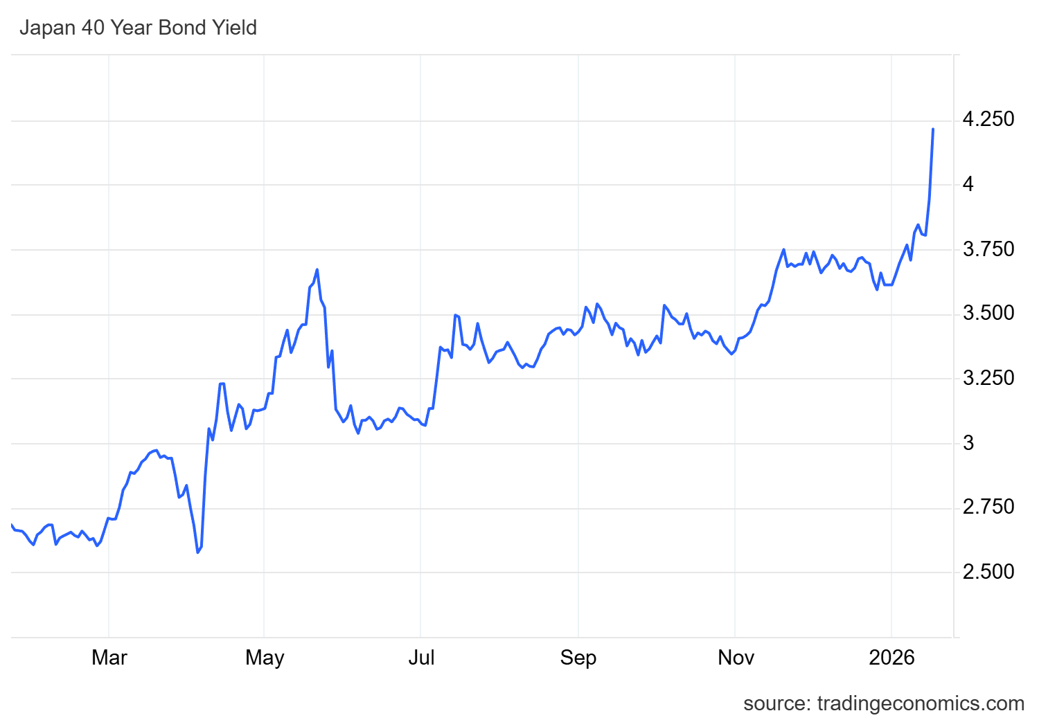 Non siamo di fronte a una semplice correzione, ma a un segnale di nervosismo strutturale. Negli Stati Uniti, il rendimento del Treasury decennale è salito al 4,29%, il livello più alto da agosto, mentre in Giappone si sta consumando il vero dramma tecnico: il rendimento a 40 anni ha superato il 4%, toccando un massimo storico. Evidentemente, l’assenza di una copertura massiccia da parte della Bank of Japan (BoJ) sta lasciando il mercato nipponico in balia delle onde, in un momento in cui il premier Takaichi ha annunciato elezioni anticipate e un programma di defiscalizzazione.