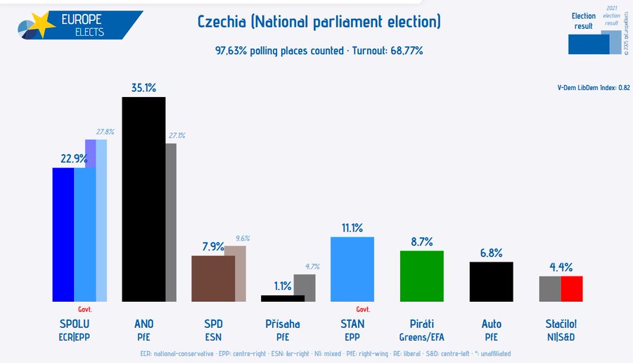 - Rassicurazioni ai moderati: Ha allontanato i timori di un’alleanza con le frange più estremiste (come Stačilo! e SPD), giurando che non avrebbe mai portato la Repubblica Ceca fuori dall’UE e dalla NATO. Anzi, la sua netta chiusura ai comunisti ha finito per prosciugare il bacino di voti della sinistra radicale, con molti elettori che hanno preferito il “voto utile” per ANO.