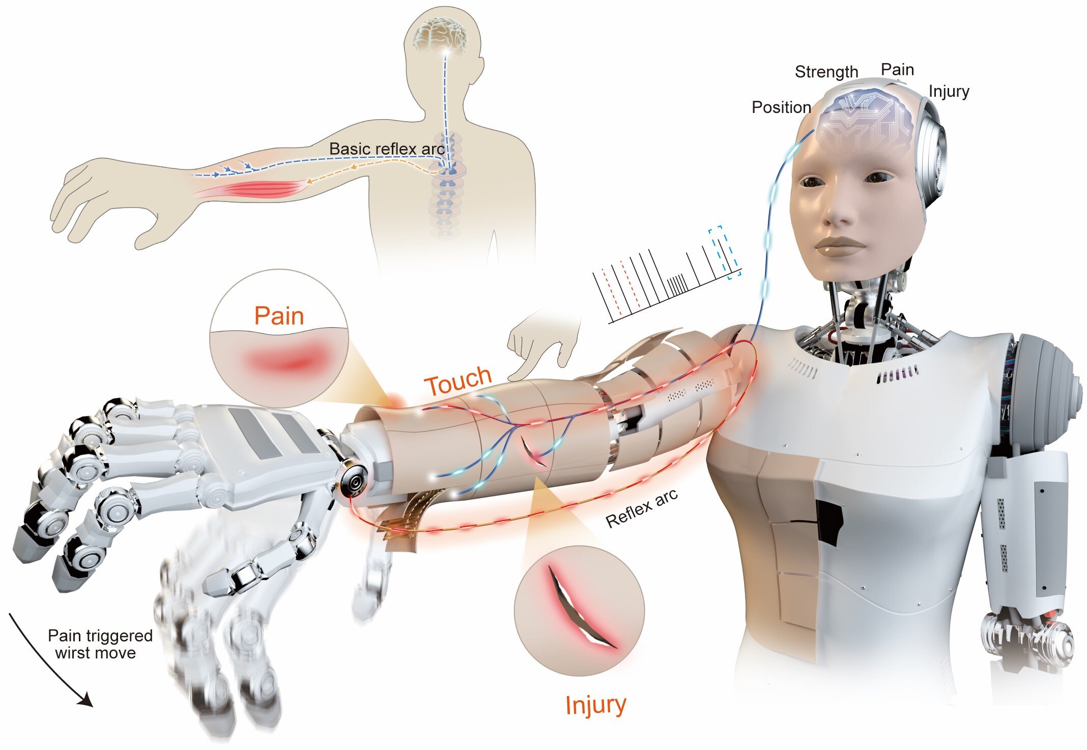 Ricercatori cinesi hanno sviluppato una nuova pelle elettronica neuromorfica (NRE-skin) che permette ai robot umanoidi non solo di “sentire” il tatto, ma di percepire il dolore e reagire di riflesso, bypassando il cervello centrale. Una notizia che affascina e inquieta, ma che, da un punto di vista strettamente tecnico ed economico, potrebbe rappresentare la chiave di volta per l’adozione di massa della robotica nei servizi.