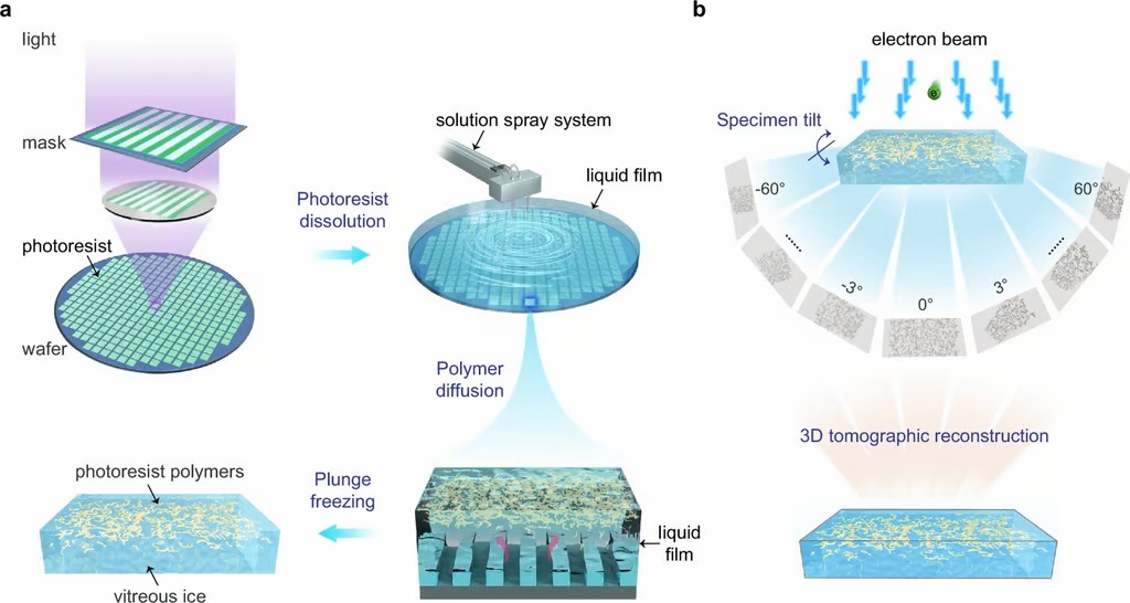 Hanno letteralmente congelato il processo chimico a metà azione. Dopo aver esposto e sviluppato un wafer, hanno raffreddato rapidamente lo sviluppatore a -175°C, bloccando tutto sul posto. Successivamente, hanno utilizzato la tomografia elettronica per ricostruire una visione 3D a livello molecolare.