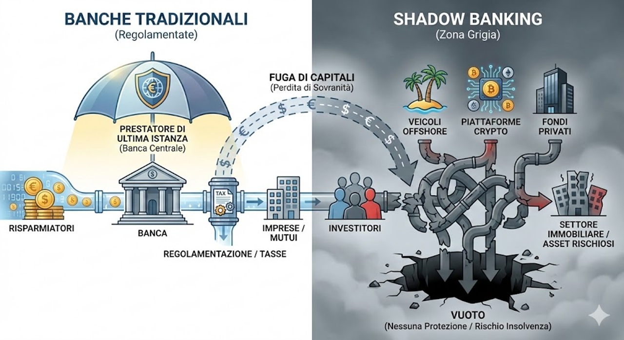 Shadow Banking: il “buco nero” da 67 trilioni che minaccia la sovranità degli Stati. L’analisi di A.M. Rinaldi sui rischi della finanza parallela e delle criptovalute.