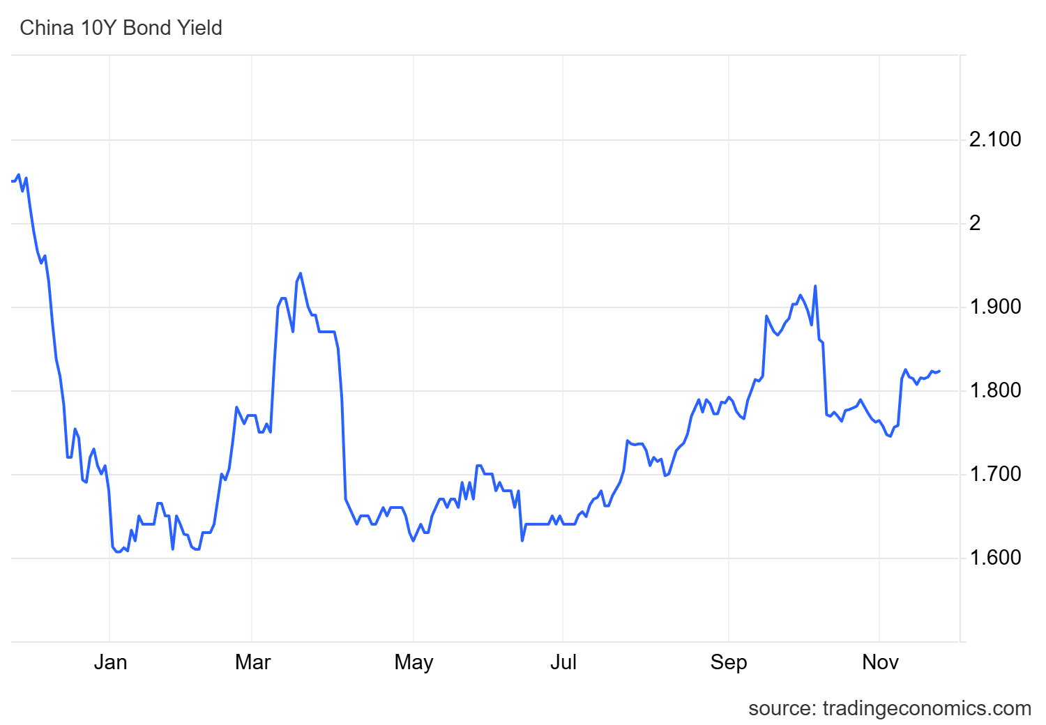 Ecco il rendimento dei titoli di stato cinesi decennali: