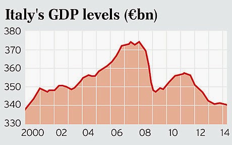 Un bellissimo articolo di Ambrose Evans-Pritchard sul Telegraph fa un quadro chiaro e spietato della grave situazione in cui si sta dibattendo il nostro paese: portare avanti le politiche asimmetriche che finora si sono dimostrate rovinose sarebbe letale, le “riforme” sono parole vuote, ormai si dovrebbe aver capito che l’unica strada è l’uscita dall’euro.