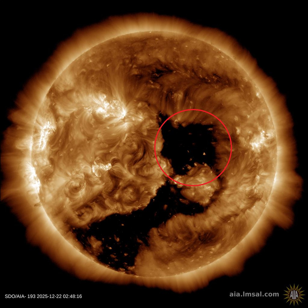 Non si tratta di una semplice brezza spaziale. I dati rilevati il 22 dicembre indicano che il materiale gassoso espulso dal Sole sta viaggiando a una velocità superiore ai 750 km/s (circa 1,7 milioni di miglia orarie). La sorgente di questo flusso è un “buco” nell’atmosfera solare, una regione dove le linee del campo magnetico si aprono verso lo spazio interplanetario permettendo la fuga del plasma.