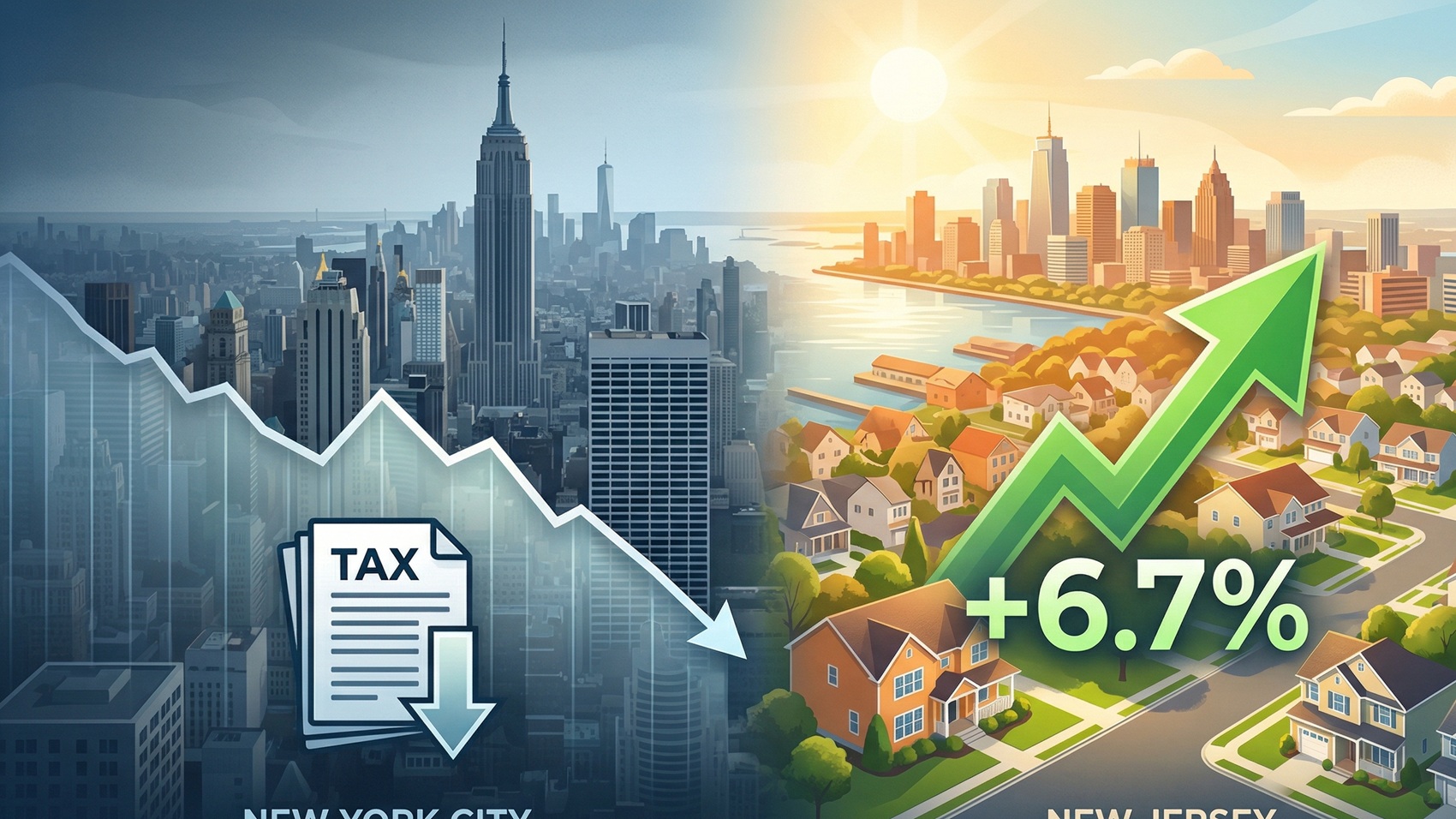 Il mercato immobiliare USA è fermo, ma le dure politiche fiscali di New York spingono residenti e capitali oltre confine, facendo esplodere i prezzi delle case nei vicini Stati rifugio.