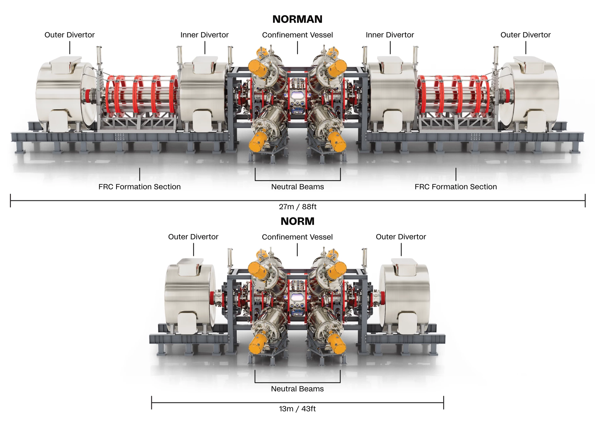 Il nuovo reattore si chiama Norm perché è significativamente più corto di Norman, il suo predecessore. Questo perché il nuovo sistema FRC ha permesso agli ingegneri di eliminare i lunghi tubi di quarzo alle due estremità della camera, utilizzati per la creazione del plasma attraverso collisioni supersoniche durante l’iniezione del plasma.