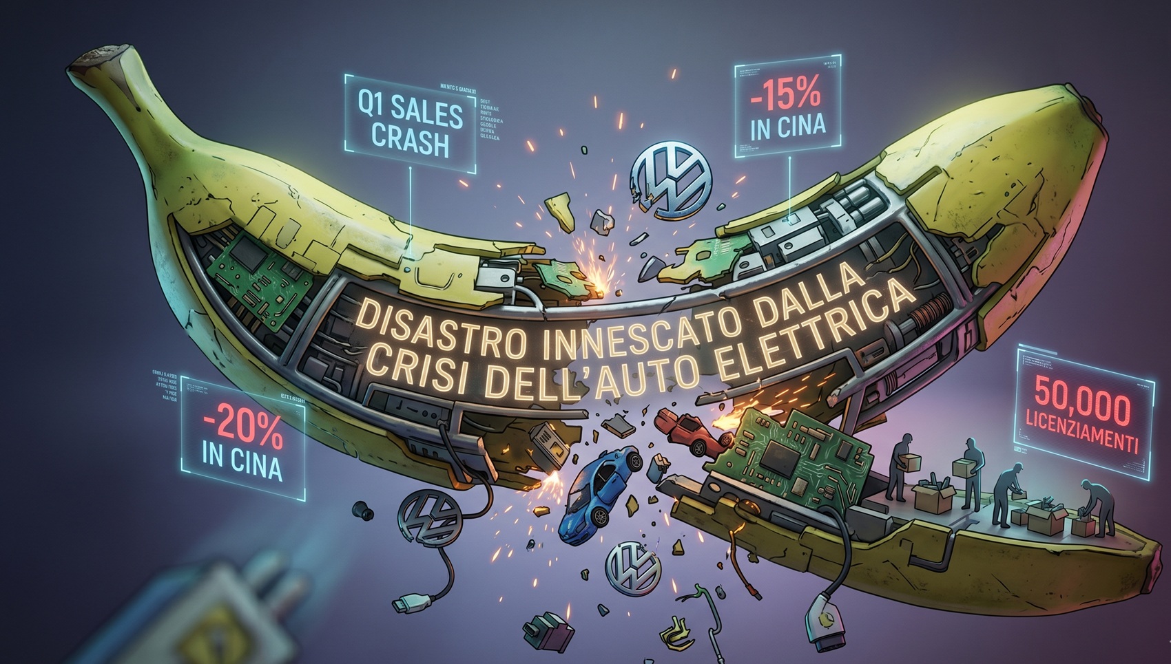 Le vendite di Volkswagen crollano nel primo trimestre (-20% in USA, -15% in Cina). Un disastro innescato dalla crisi dell’auto elettrica che preannuncia 50.000 licenziamenti.